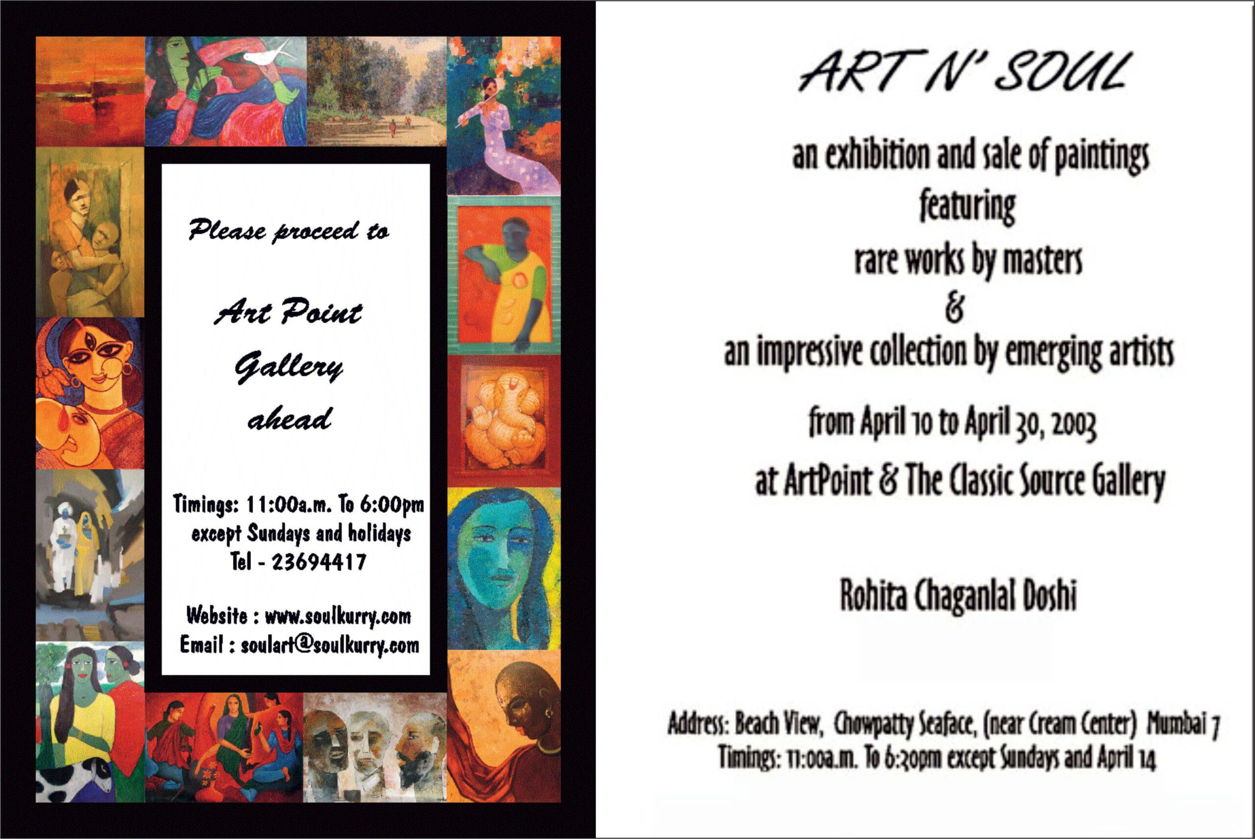 Date : 10th April to 30th April 2003 Our first exhibition was in 2003 showcasing works by renowned masters along with emerging artists, in our art gallery at Beach View, Chowpatty Sea Face in Mumbai.The exhibition sold out at the preview and had numerous visitors admiring the works over the twenty days. Visitors included many […]